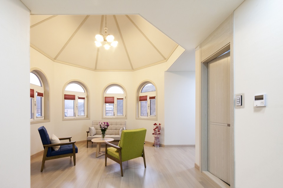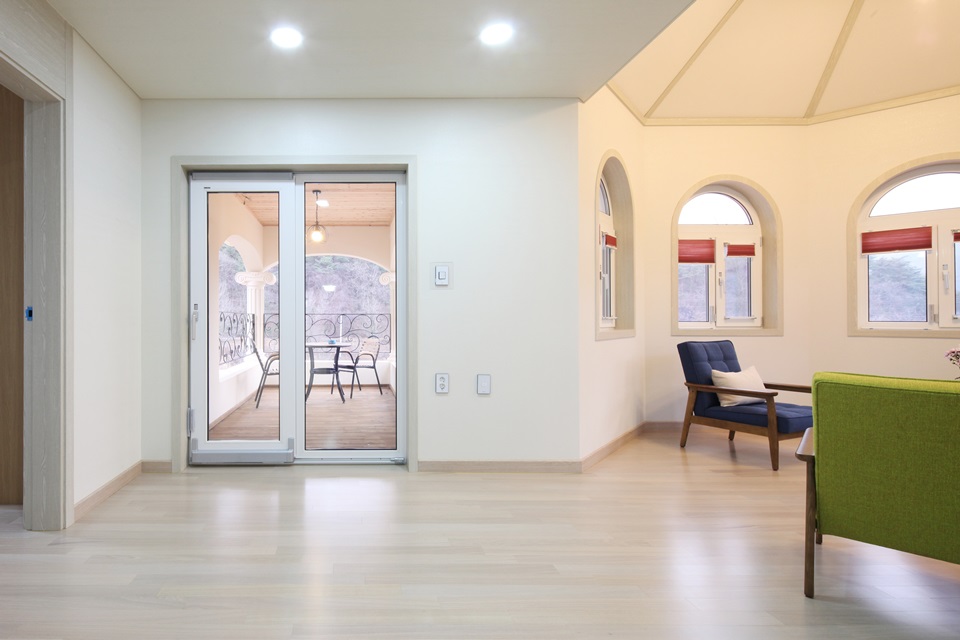 기와의 다채로운 선을 감상할 수 있는 디자인으로 반원형의 창으로 디테일을 더했다.