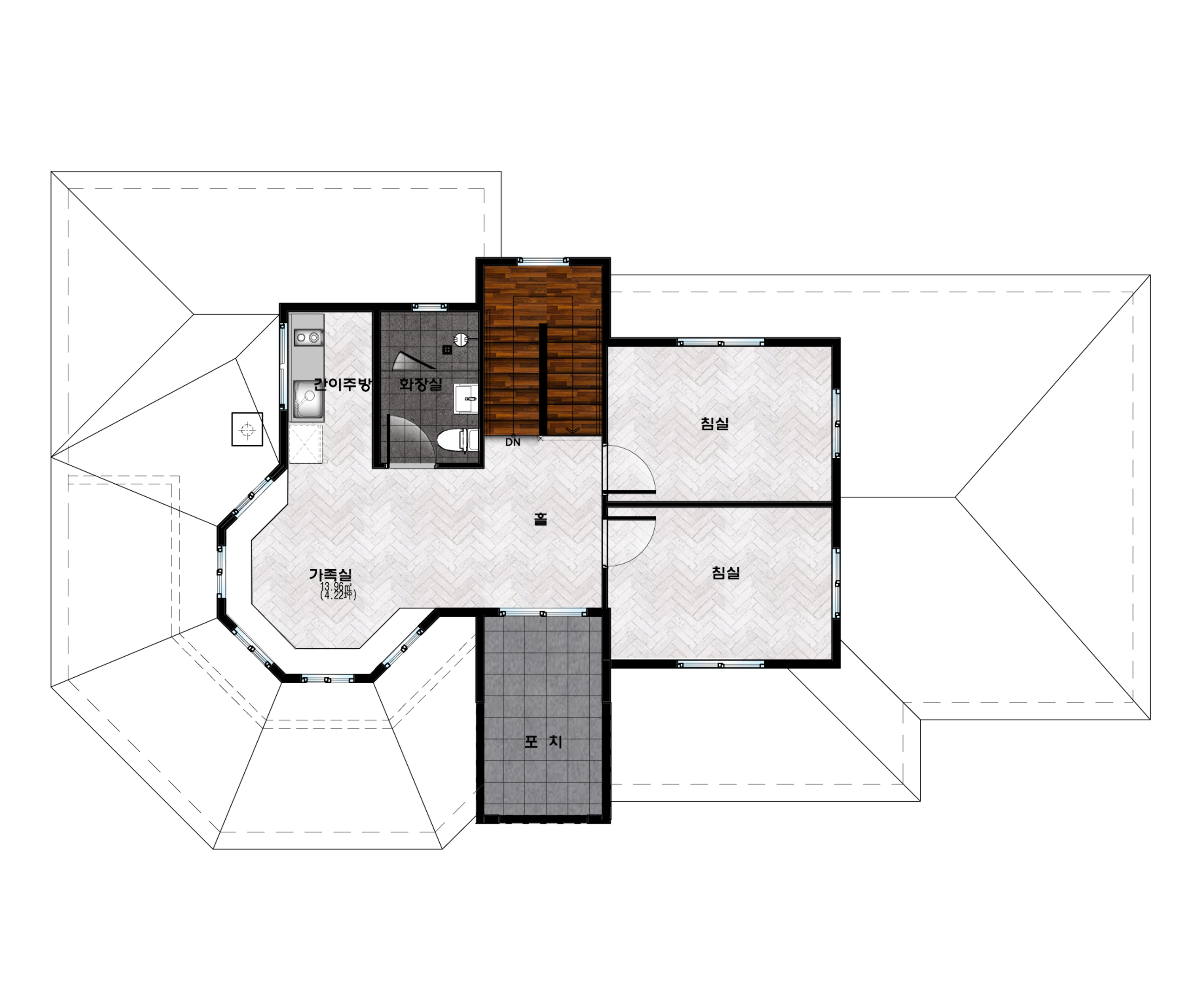 내부마감 : LG실크벽지, 복합타일, LG강화마루 포르테