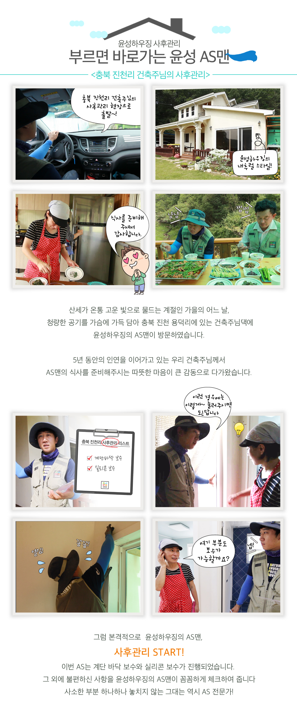 건축주님의 소중한 보금자리, 윤성하우징 전문 사후관리팀이 항상 지켜드리겠습니다.