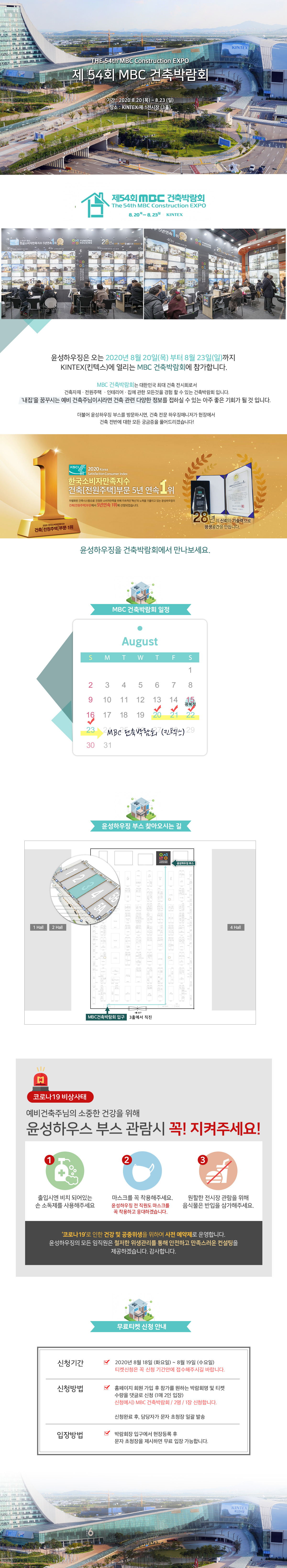 8월 23일 일요일 킨텍스 mbc건축박람회 2명 티켓 부탁드립니다. 그런데 이번 코로나 때문에 일정이 취소 되거나 변경 되지는 않았는지요?