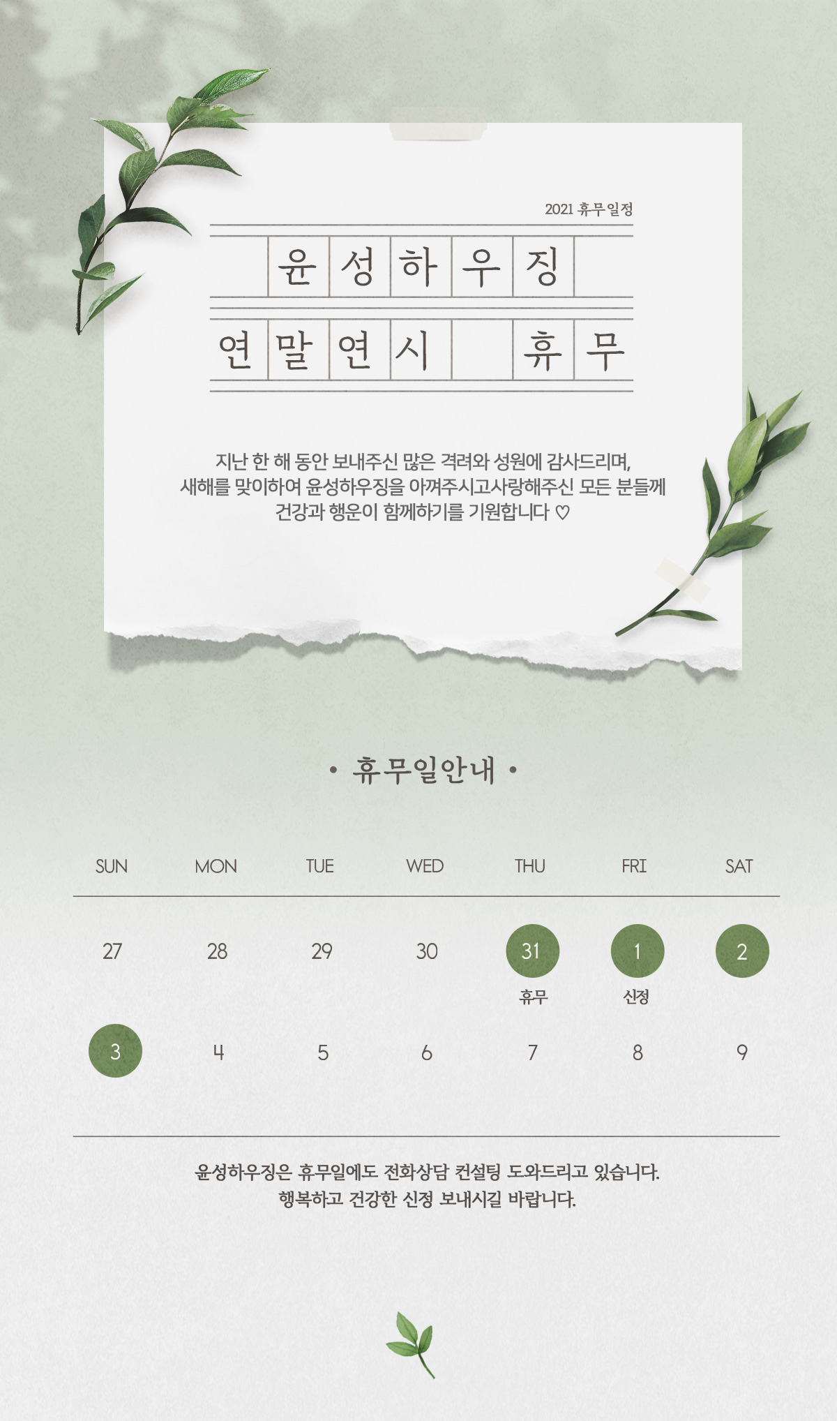 [신정] 윤성하우징 연말연시 휴무일정 안내