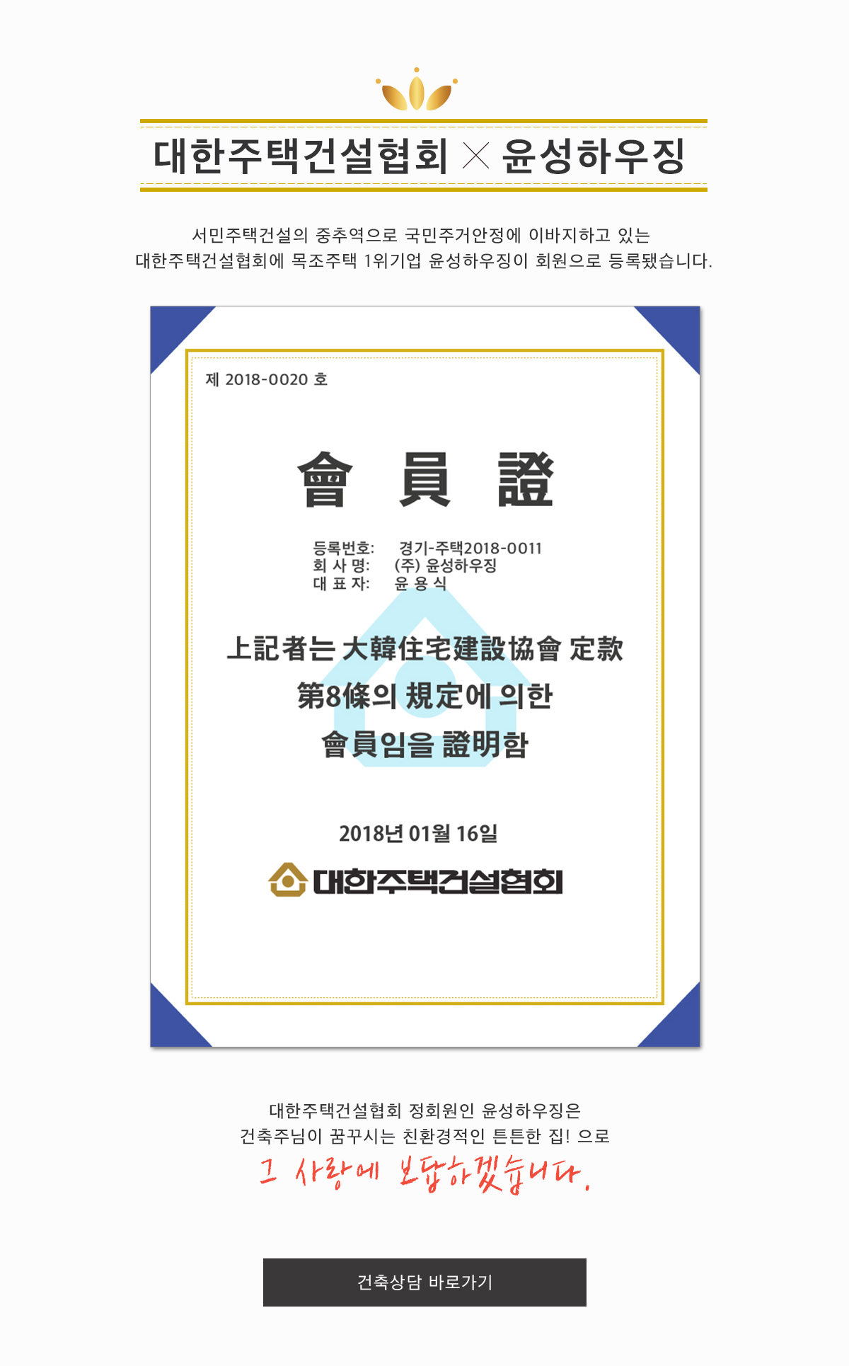 [협회등록] 대한주택건설협회 정회원 등록